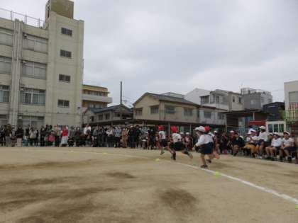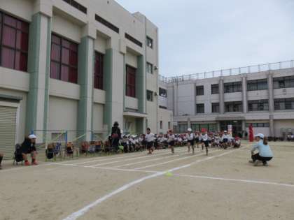 運動場の半周をゴールを目指して一生懸命に走りました。