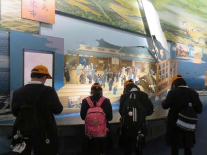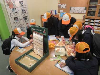 大阪歴史博物館では、展示物を見ながらメモをとったり、気になったことを伝え合ったりしながら、大阪の歴史の移り変わりを学んでいました。
