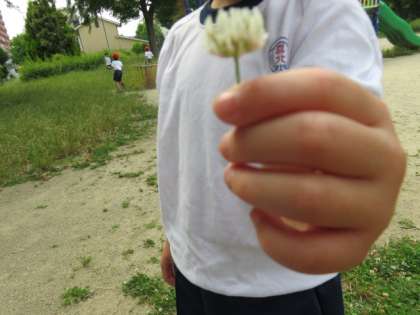 生活科の勉強です。公園の緑は深さを増し、たくさんのモンシロチョウを見かけました。