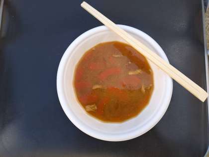 最後は炊き出し訓練です。レトルトの豚汁でした。レトルトとは思えない味わいで温かく、具材も柔らかかったです。