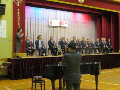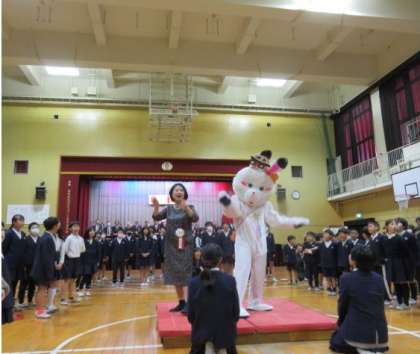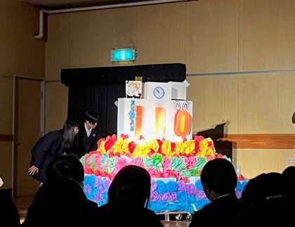 お祝いの歌をみんなで歌ったり、マスコットの「いずウォンピ」が来てくれたり、バースデーケーキの披露があったりと講堂はお祝いムードでいっぱいでした。