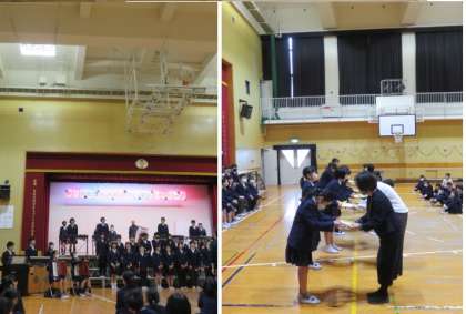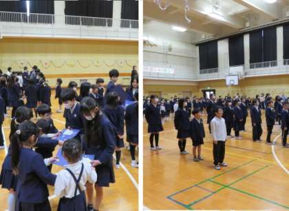在校生が6年生に感謝とお祝いの気持ちを伝えます。