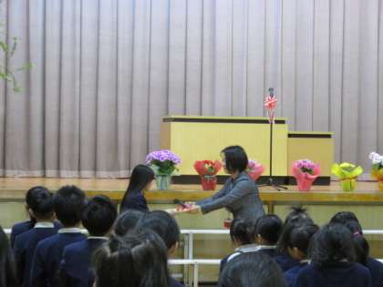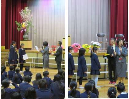 1年生と5年生の代表児童が、1年間の思い出作文を読んでくれました。