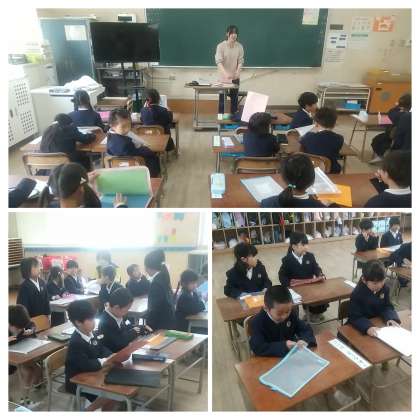 連絡袋を整理しています。