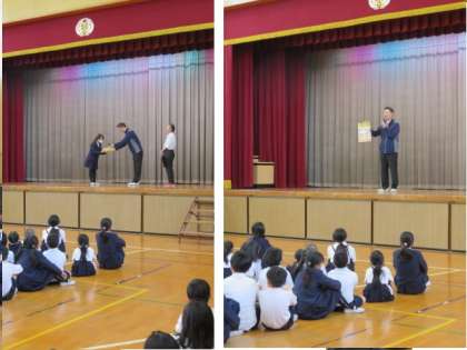 集会後に、キックベースボールのルーキー大会準優勝の表彰がありました。