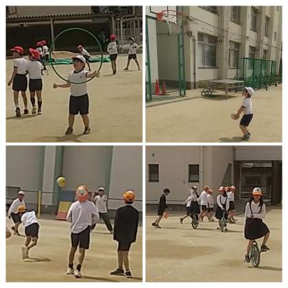 場所をゆずり合いながら遊んでいます。