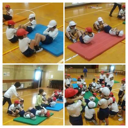 上体起こし 目標は7点(30秒間で女子16回、男子18回)です。