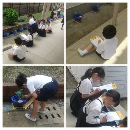 ミニトマトの観察をしています。