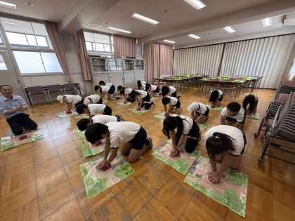 自分たちでもできそうなファーストエイドを習った後、胸骨圧迫に挑戦しました。
