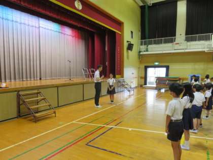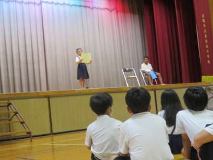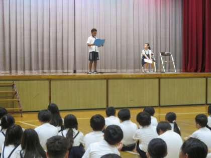 1学期の思いで作文を、2名の児童が発表してくれました。