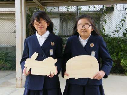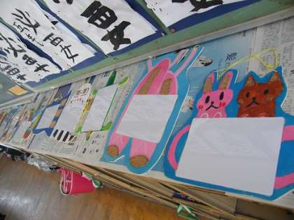 今回は5年生、平面作品は「Let’s play sports 」、立体作品は「わくわくメッセージボード」です。