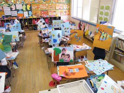 今回は1年生、平面作品は「大きく のびのび かこう」、立体作品は「デコレーションケーキ」です。