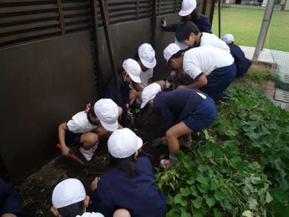 2年生は、1学期の生活科の時間に植えたサツマイモを2学期に収穫。