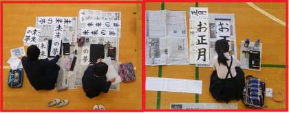6年生は「未来の夢」、3年生は「お正月」。体育館に足を踏み入れると、墨独特の芳香が漂っていて、ピーンと張り詰めた充実した学習だったように思います。