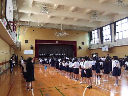 今日は今年度最初の児童集会です。