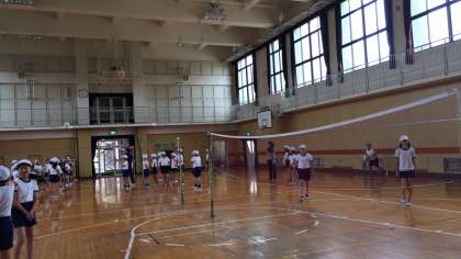 5年生が体育の時間に元気にバレーボールをやっていました。