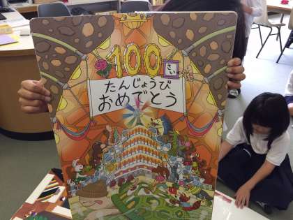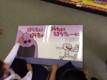 図書の時間、3年生が大きな絵本を読んで、とても楽しそうでした。