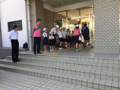 今日は、区長さんが朝の挨拶運動にきて下さいました。