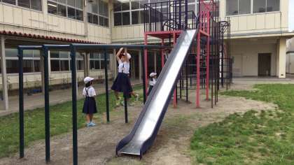 子供たちは暑いですが元気に休み時間に遊んでいます!