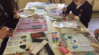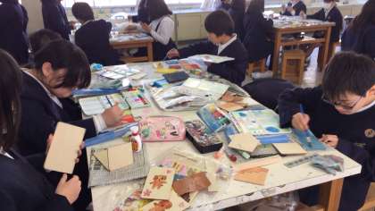 4年生が図工で「小物入れのようなもの〜鉛筆立て等」を作っています。