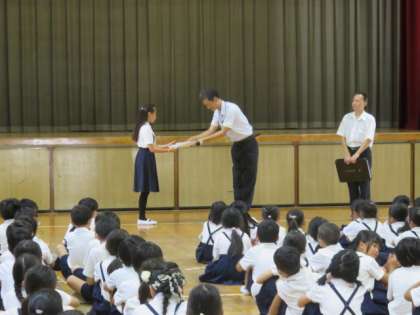 2学期もキックベースクラブの表彰から始まりました。