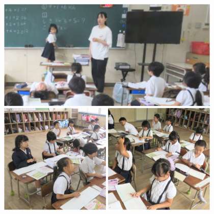 1桁+1桁+1桁の計算をしています。最初の1桁+1桁は答えが10になる式になっていて、計算に慣れていきます。