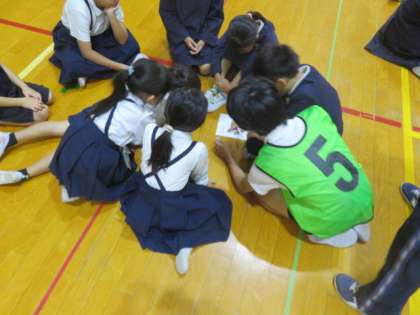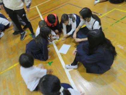 どの班も、輪になってみんなで意見を出し合いながら遊びを決めていました。