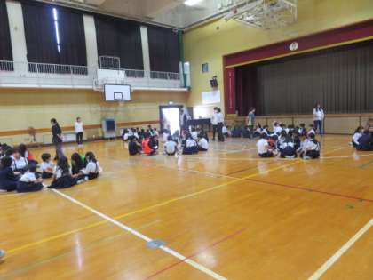 今日の集会は、11月14日に行う縦割り班での「全校遠足」の班遊びを、話し合って決める時間です。