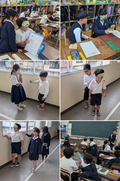 安全にサポートするための介助方法を学び、視覚障がいのある方の困難さを「疑似体験」し、理解を深めています。