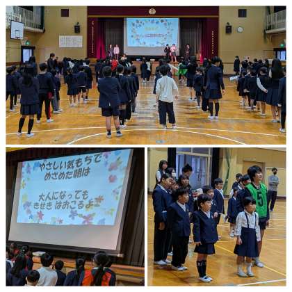 音楽集会で「やさしさに包まれたなら」を合唱しました。