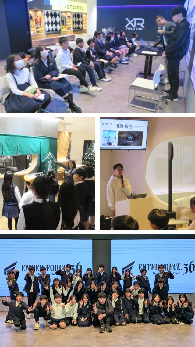 全長 18 メートルのLEDビジョンを備えたイベントスペース「ENTER FORCE.36 XR field」では、チームを組んでeスポーツを体験しました。