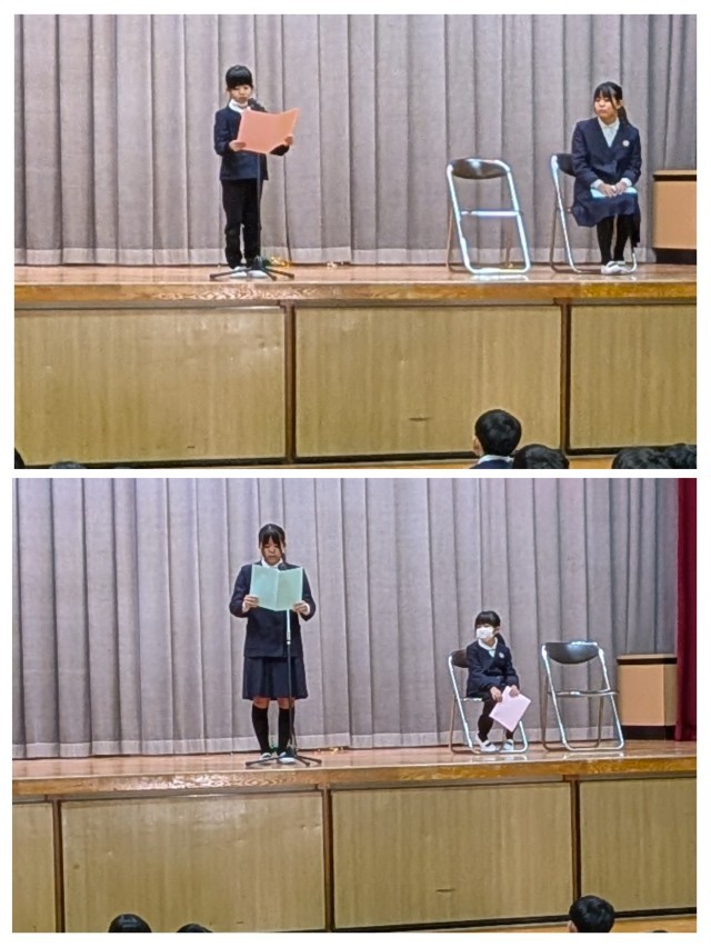 思い出作文として、3年生は音楽鑑賞会、6年生は修学旅行での学びを発表しました。