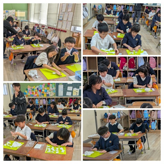 様々な技法で紙粘土細工を作っていきます。