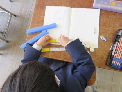 ブロックを使って計算の仕方を学んでいました。