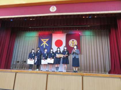 まずは表彰でした。読書感想画とキックベースの表彰です。