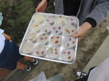 指で種のお部屋を作ったら、上からやさしく土のお布団をかけてあげます。