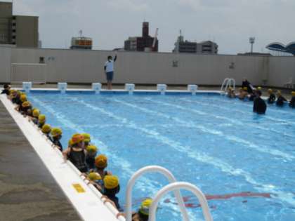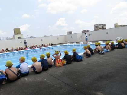 昨年は感染症予防で2年生もプールに入っていないため、どの子も小学校のプールに入るのは初めてでした。