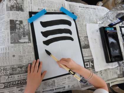 横の画の基本となる漢数字の「一」を書いていました。