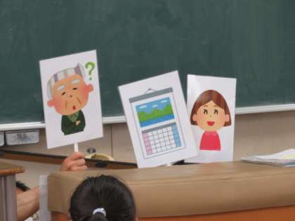 ペープサートで「わるい例」と「よい例」を見比べて、認知症の方とどう接すればよいかわかりやすく学び、その後に○×クイズで深めました。