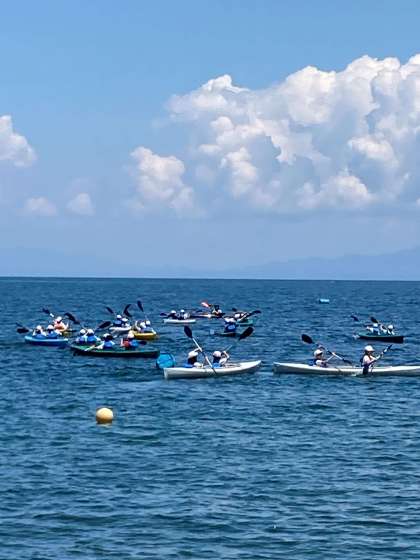 2人乗りもスタートしました。息を合わせて漕いでいます!