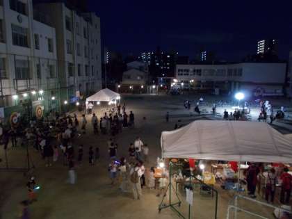 日が暮れてお祭りらしい雰囲気です。