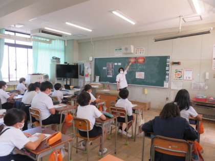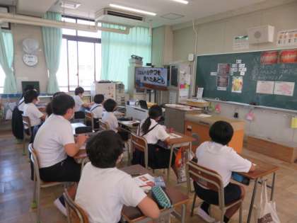 商店街のお店に訪問し、お店のことについてインタビューをさせていただきました。商品のことやお店の歴史などを知ることができたり、ふだんは見ることができない場所を見せていただくことができたりし、たくさんの発見がありました。挨拶やインタビューの練習の成果もしっかりと発揮していました。
