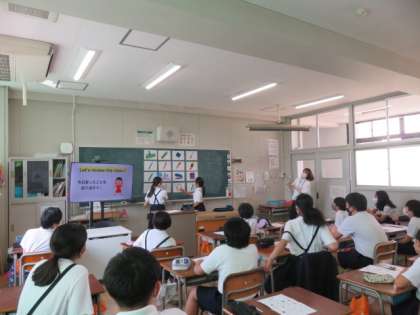 質問に英語で答えたり、英語の指示をしっかり理解して活動したりできたので、中学校の先生にたくさんほめていただきました。 -