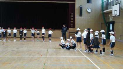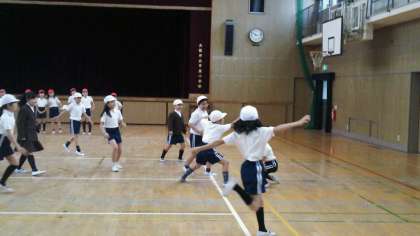 4年生は、体ほぐし運動もかねて、体育館で「ならびっこキック」をしていました。今年はじめて同じクラスになったお友だちもいたようですが、チームで相談しながら楽しんで取り組んでいました。