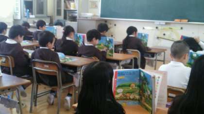 1年生は、今日から5時間授業開始です。1組は、並び方を確認していました。2組は、音楽の授業で元気よく歌を歌っていました。