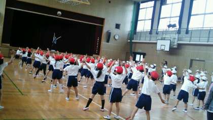1.2年生も運動会に向けてダンスの練習が始まりました。大人よりも覚えるのがはやいようで、ニコニコ笑顔で躍っています。