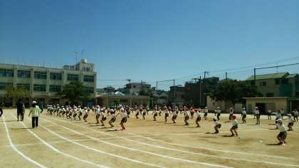 3・4年生が取り組んでいる「エイサー」も、運動場で場所を確認しながらの練習が始まりました。元気いっぱいのかけ声も素敵です。