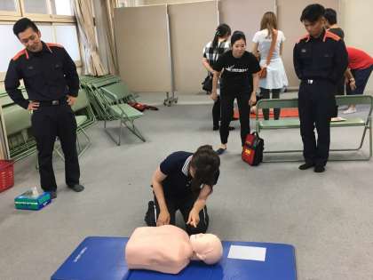 大正消防署の方々を講師にお招きし、救命救急講習会を実施しました。保護者の方々の参加もありました。