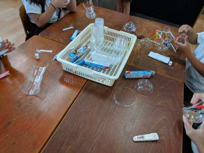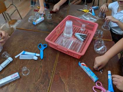 3年生の図工科では「クリスタル光のファンタジー」の学習に取り組みました。ペットボトルやカップなど透明な材料の組み合わせを工夫して作っていました。