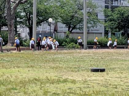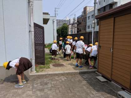 たてわり班で、清掃活動を行いました。平尾公園やグラウンド、学校の中でも普段はそうじしないような場所をきれいにしました。